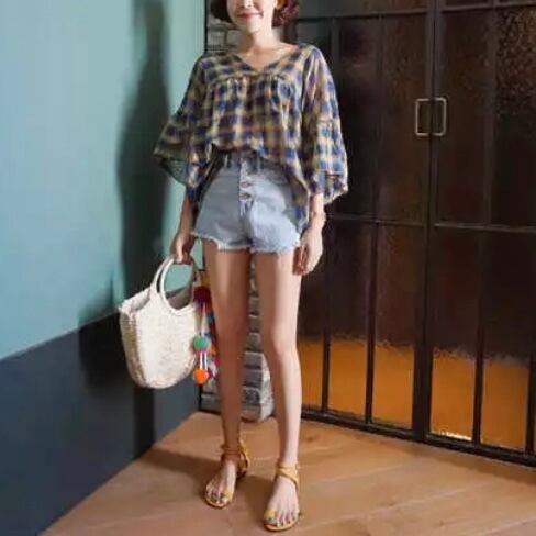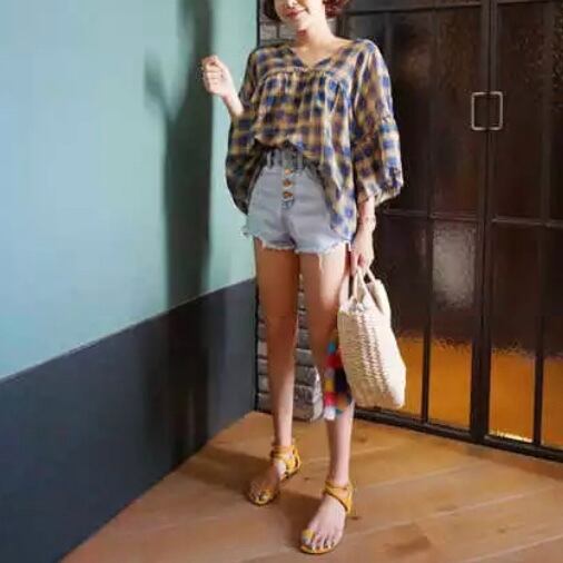 Vネック 七分袖ベルスリーブ ヘルシートップス E25