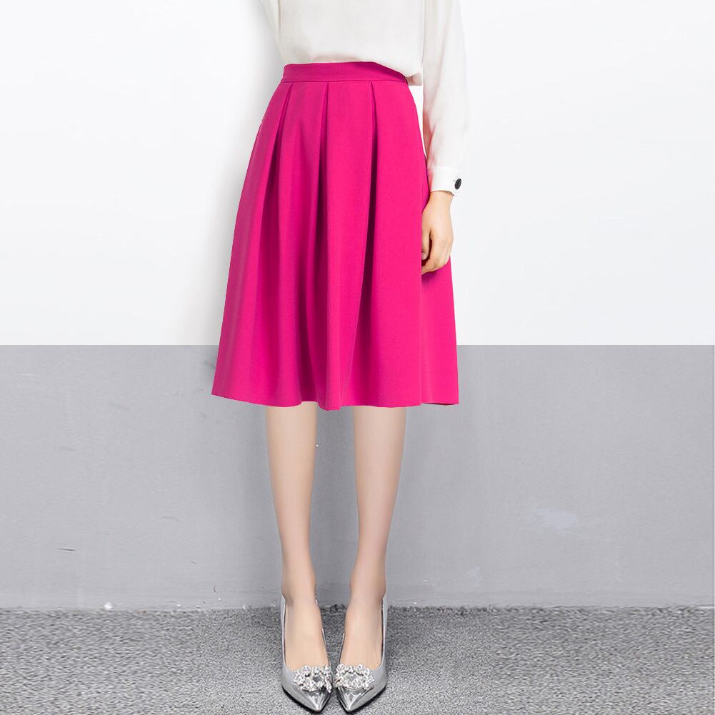 上品な印象のひざ丈スカート♡タック入りでフレアのシルエットが綺麗☆フレアスカート ひざ丈 スカート タック入り レディース ファッション 大人上品 きれいめ シンプル 無地 シンプルコーデ ハイウエスト プチプラ 通勤コーデ 女子会 美シルエット ボリュームスカート 楽ちん ローズレッド レッド ブルー 【538】