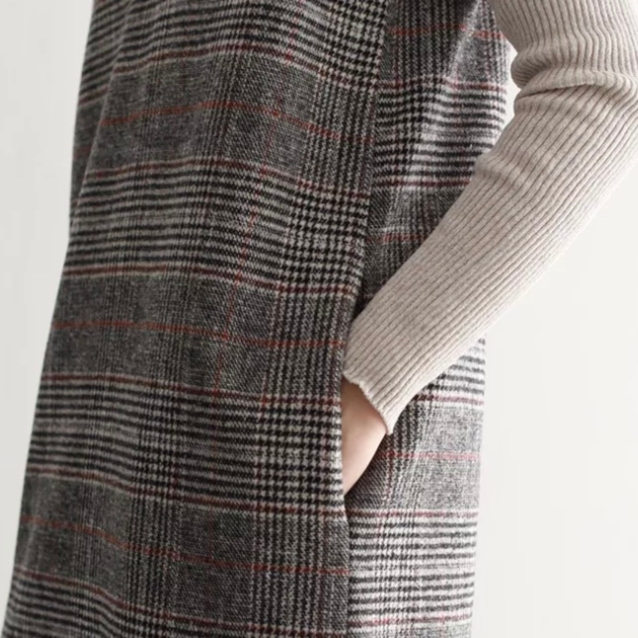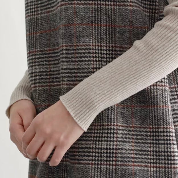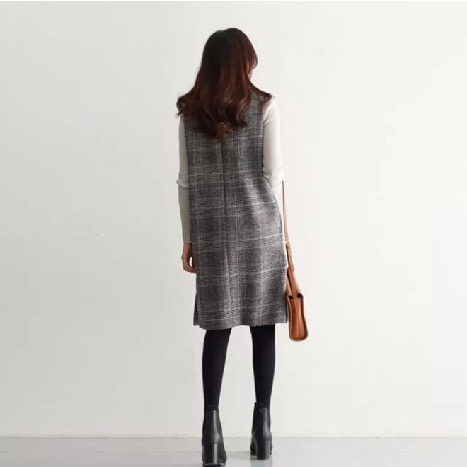 Vカット タータンチェックワンピース デート 通勤コーデ 女子会 E56