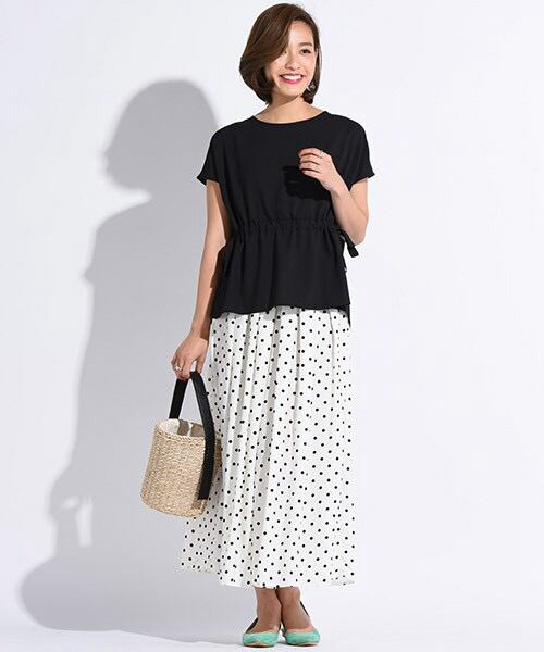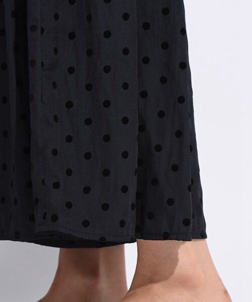 スカート見えするワイドパンツ☆レディライクな印象を与えてフェミニンさもup!!レディース ファッション スカンツ ワイドパンツ ガウチョウパンツ フレアパンツ ウエストゴム ボトムス 体型カバー カジュアル ゆったり マキシ丈 女子会 ドット柄 無地 プチプラ こなれ感 パープル 黒 白 【550】