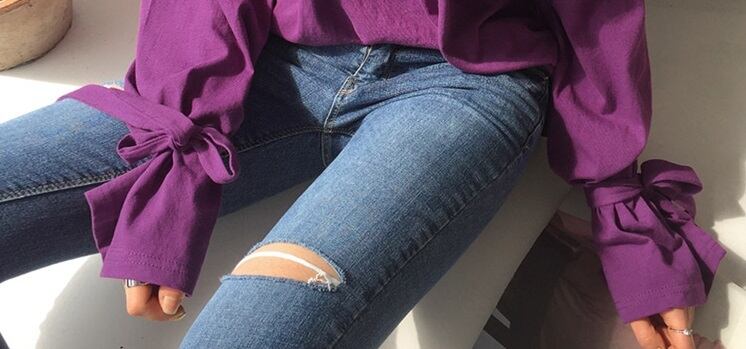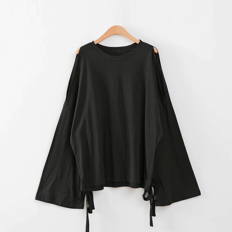 ゆるシルエットで大人フェミニンな肩開きドルマントップス☆トップス レディース Tシャツ 肩あき カットソー リボン カジュアル 袖フレア 体型カバー プチプラ デコルテ デート 女子会 ふんわり グレー ブラック パープル 【551】