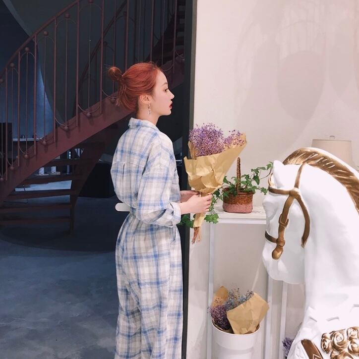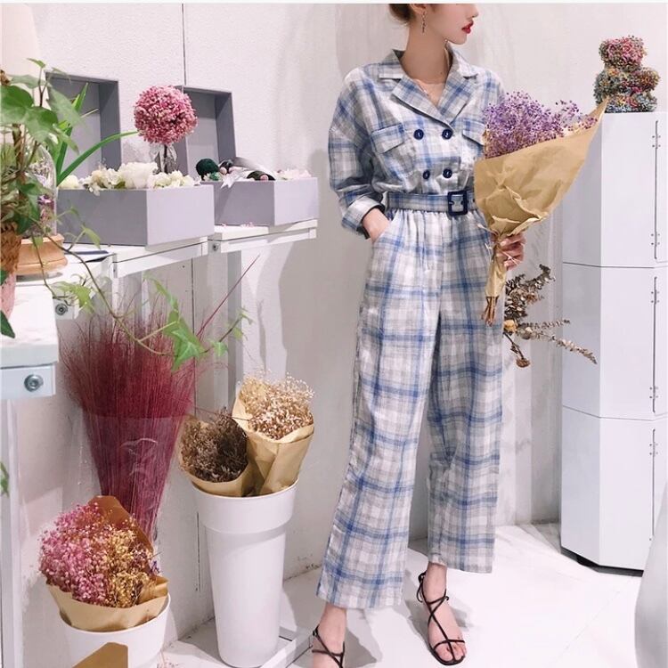 ダブルボタン ウエストマーク サロペット カジュアル ガーリー 女子会E70