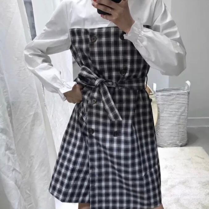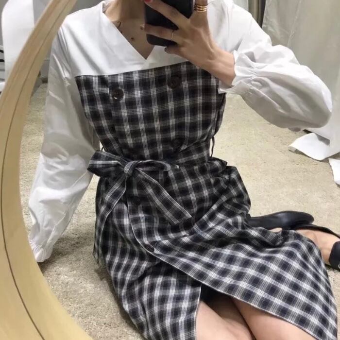 ウエストマーク レイヤードワンピース 長袖 ガーリー レトロ おでかけE71
