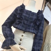 スクエアフリル トップス ガーリー チェック カジュアル デート 着回しE76