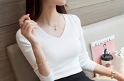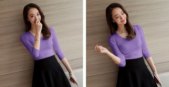 ニット 長袖 Vネック レディース ファッション 長袖ニット タイトニット ニットソー フィット スリム 細身 華奢見せ効果 大人可愛い デート 女子会 パープル ホワイト ブラック 【558】