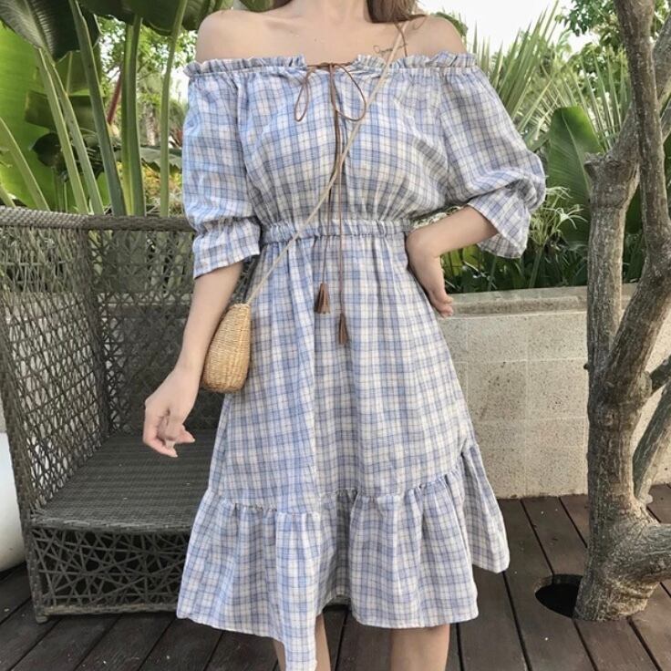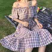 オフショルガーリー Aラインワンピース ガーリー デートE97