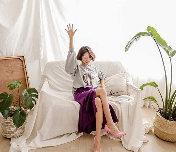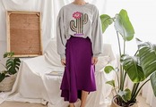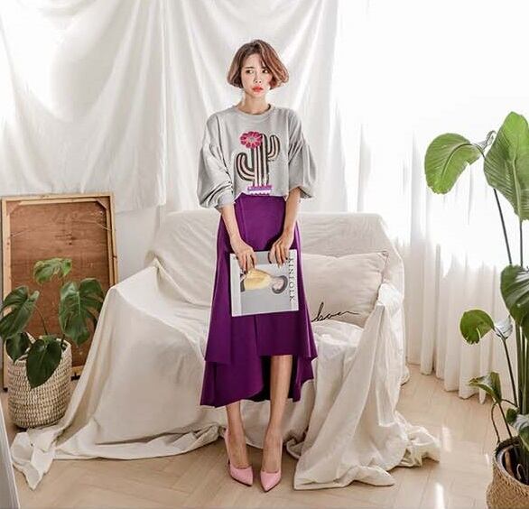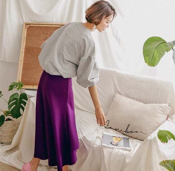 大人シルエット 変形スカート スッキリ脚長効果大 レディース ファッション スカート 無地 膝丈 ガールズ ハイウエスト パーティ 大人上品 プチプラ きれいめ デート 細身 女子会 華奢見せ効果 お出かけ パープル 【545】