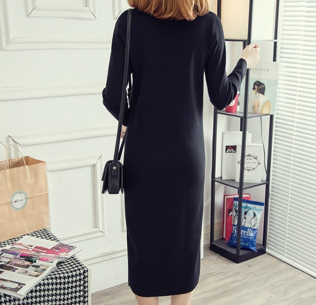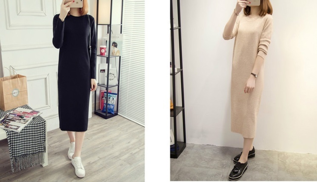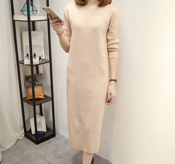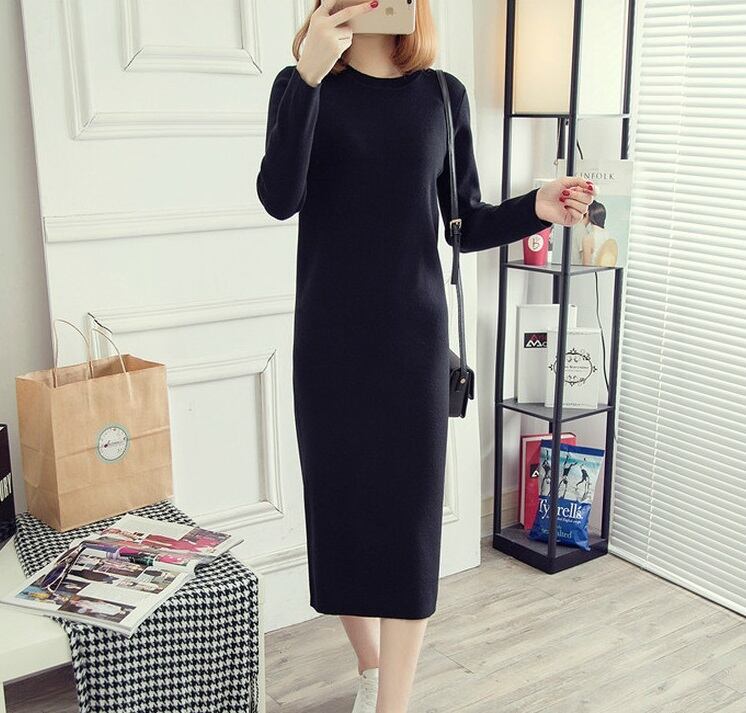 スリムなシルエットが女性らしい ニットワンピ レディース ファッション 長袖 ロングスカート 丸首 無地 おしゃれ ガールズ 大人上品 プチプラ デート 女子会 大人カジュアル お出かけ ニット 可愛い ブラック アプリコット 【562】