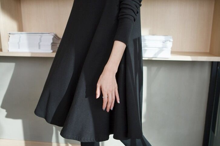 すっきりシルエットでシンプルな大人カジュアルコーデ タートルネック ふんわりフレア ワンピース レディース ファッション ハイネック 無地 Aライン シンプル フォーマル 体型カバー ゆったり 楽ちん デート お呼ばれ お出かけ 長袖 【565】