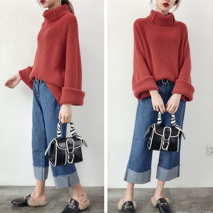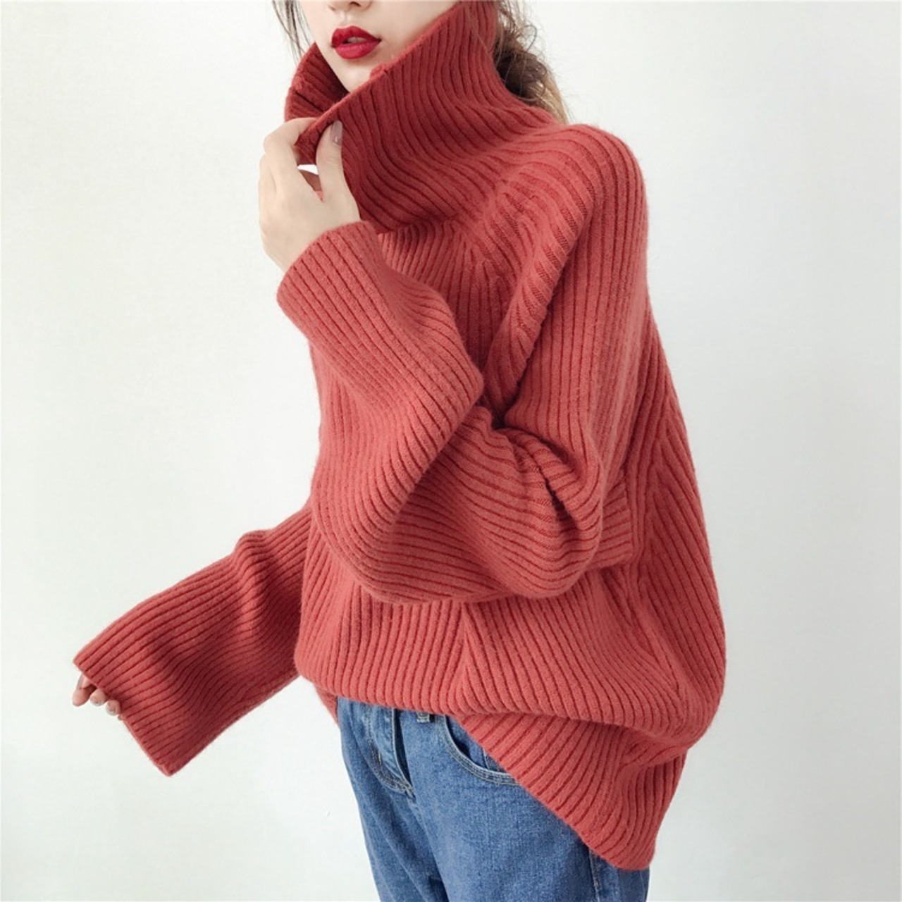 ゆったりとしたフォルムとボリュームのある首元がポイント レディース ファッション ニット セーター タートルネック 長袖 トップス ボリューム ゆったり 厚手 ハイネック 女子会 大人カジュアル こなれ感 可愛い 着まわし 体型カバー レッド ホワイト イエロー 【574】