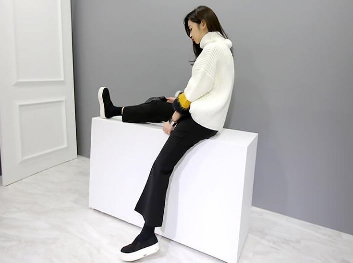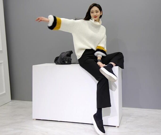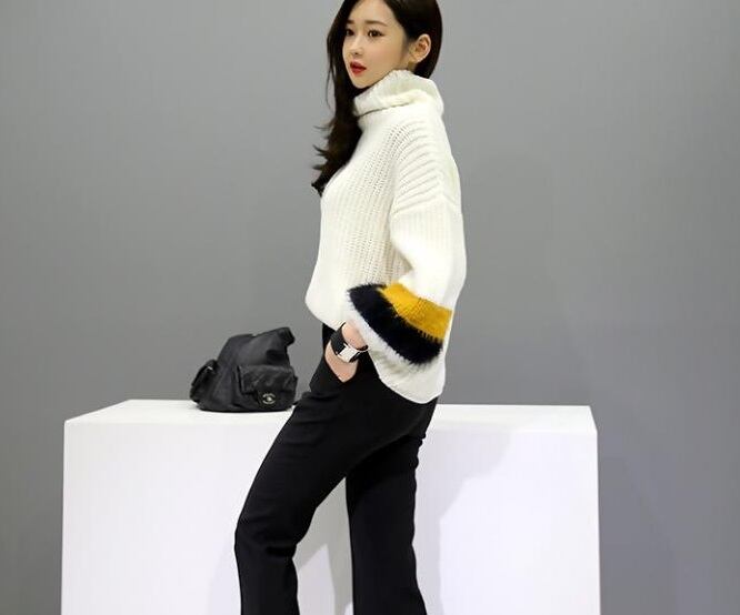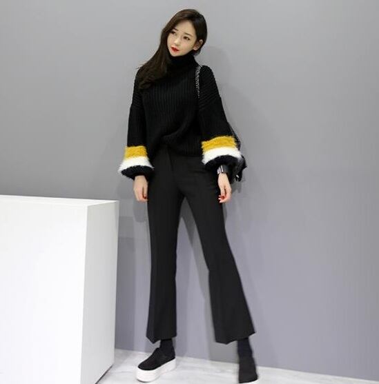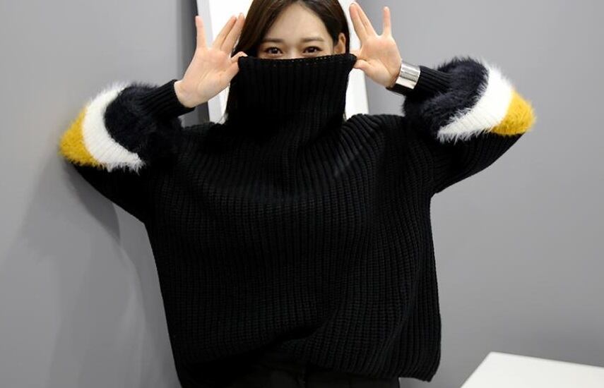 2018年秋冬新作 袖のゆるふあ感が可愛さアップ レディース ファッション ゆったり ハイネック 厚手 ニット トップス タートルネック ボリューム袖 楽ちん お出かけ デート 女子会 ゆるシルエット 大人カジュアル おしゃれ ホワイト ブラック 【584】