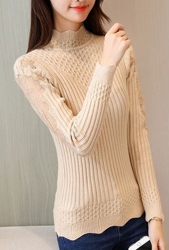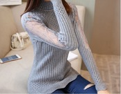 2018年秋冬新作 上品な大人フェミニン向けのアイテム 袖レースがおしゃれ レディース ファッション ニット ハイネック トップス レース 透け感 おしゃれ 可愛い デート 女子会 お呼ばれ お出かけ プチプラ 大人カジュアル 細身 ミセス グレー ホワイト ライトカーキ 【589】