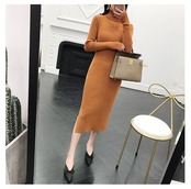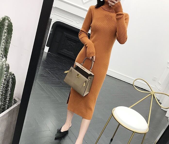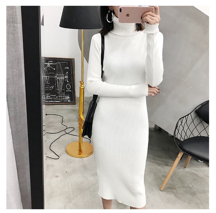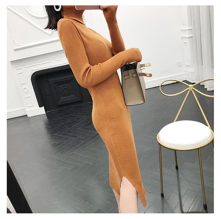 トレンドのミドル丈ワンピース シンプルなのでコーデの幅が広がります レディース ファッション ミドル丈 サイドスリット入り タートルニットワンピース 長袖 無地 ざっくり リブニット お出かけ 女子会 デート 美シルエット プチプラ 大人上品 ブラック ホワイト ライトブラウン 【560】