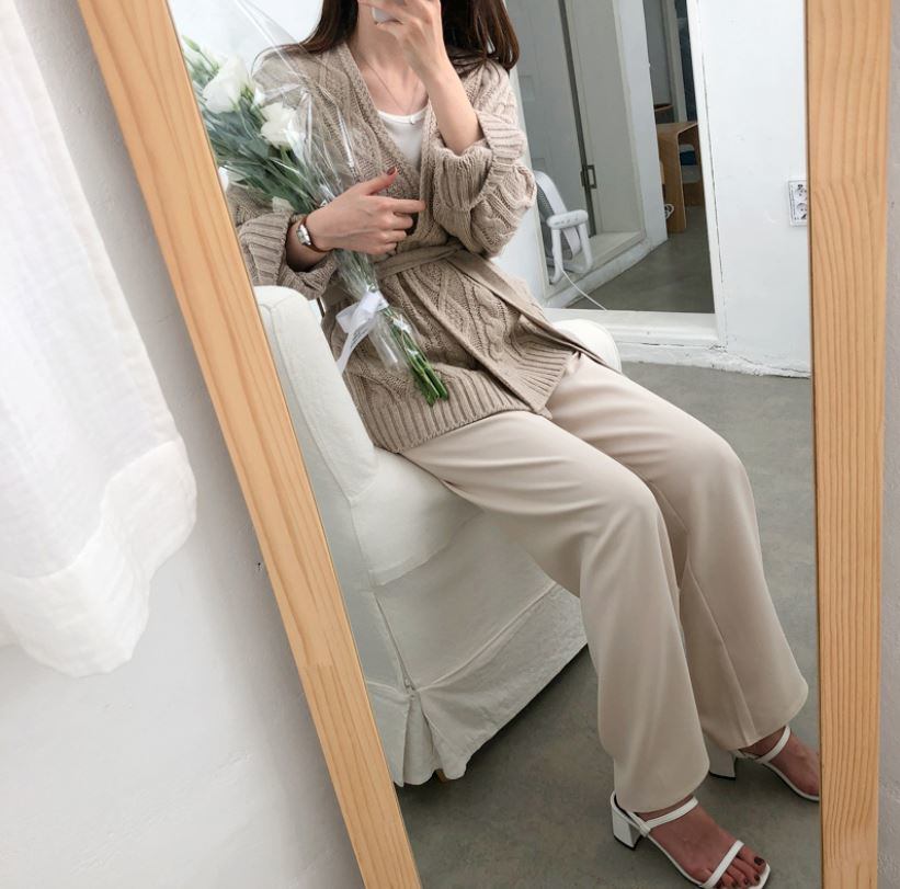 レディース 秋新作 アウター ジャケット 菱形・ケーブル編み ベルト バルキー ニット カーディガンコート D54