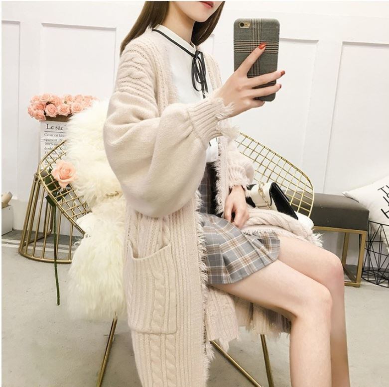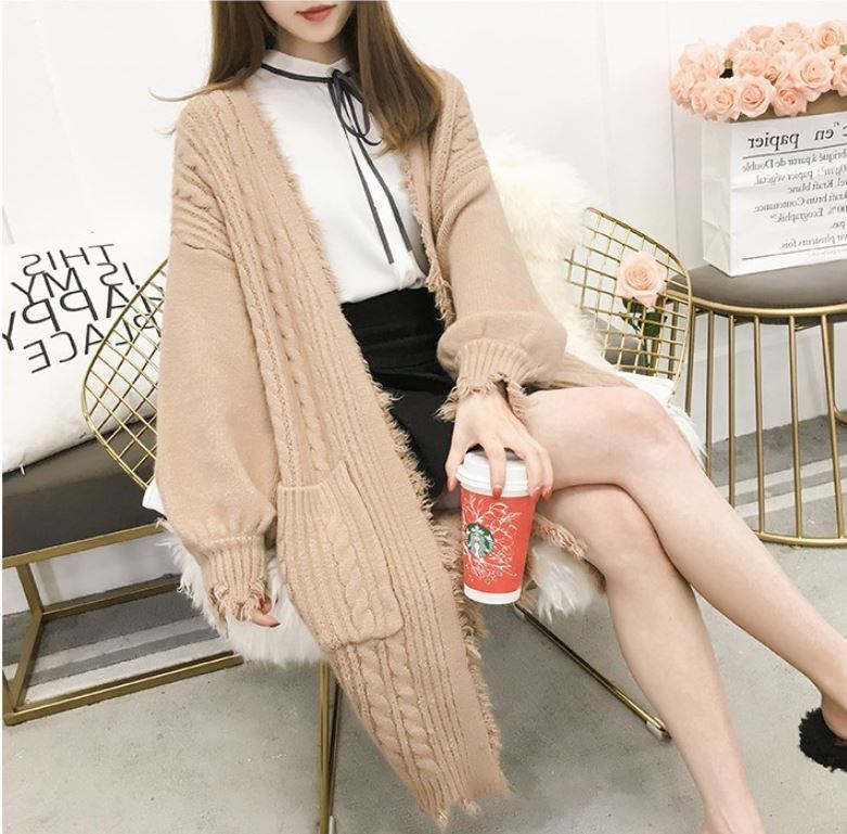 レディース 秋新作 アウター ジャケット タッセルステッチ 長袖 ケーブル柄 ニット ロングカーディガン D56
