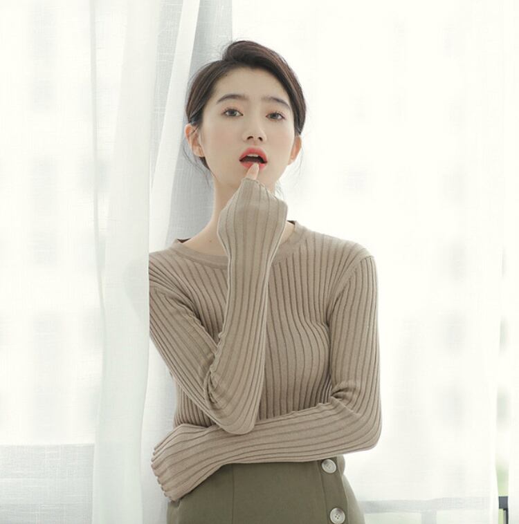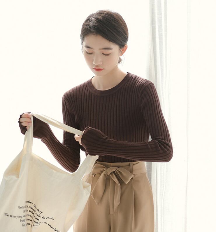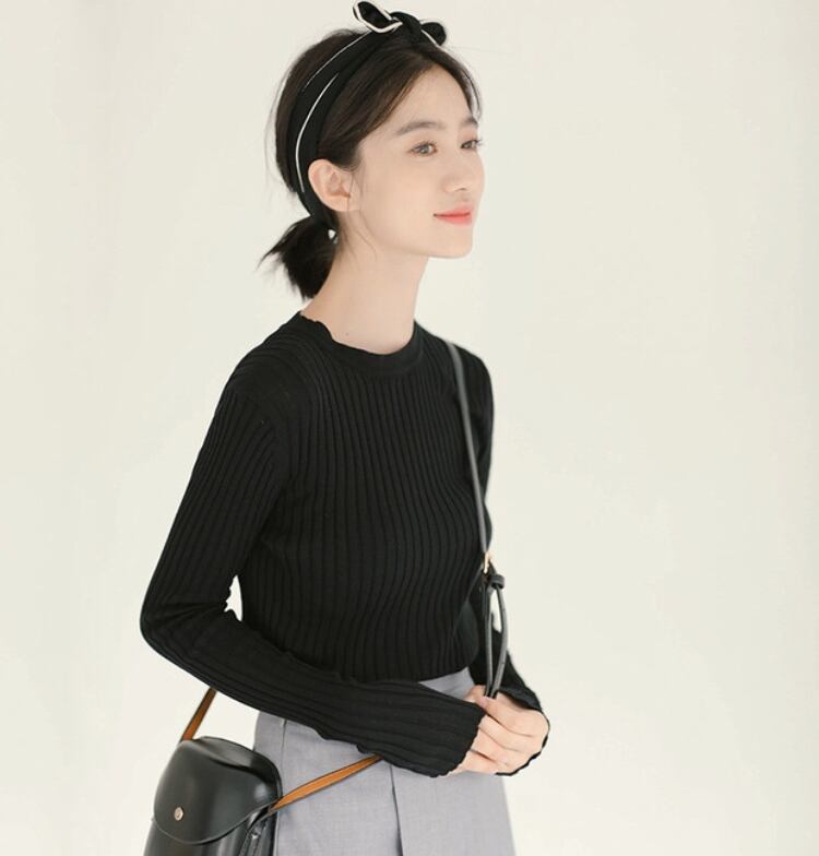 リブニットトップス 4カラー 秋冬 ニット 長袖 ガーリー カジュアル 着回し デート 通勤 オフィス F12