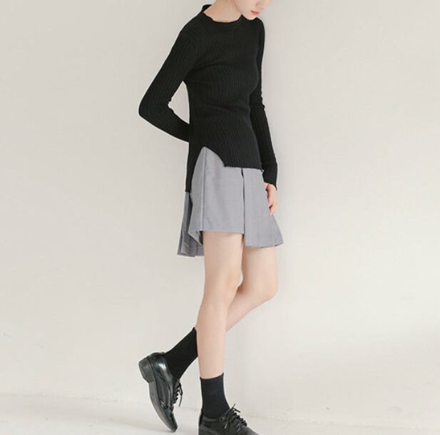 シンプルなリブトップス