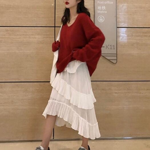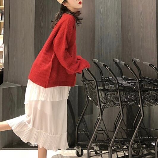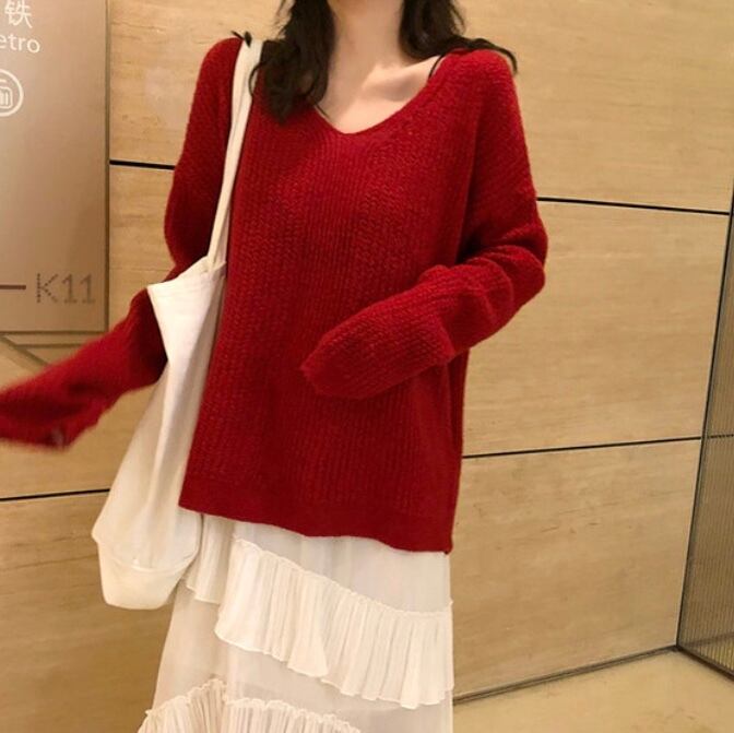 ニットトップス ゆったり 秋冬 Vネック 長袖 ニット ガーリー トレンド デート 女子会 F13
