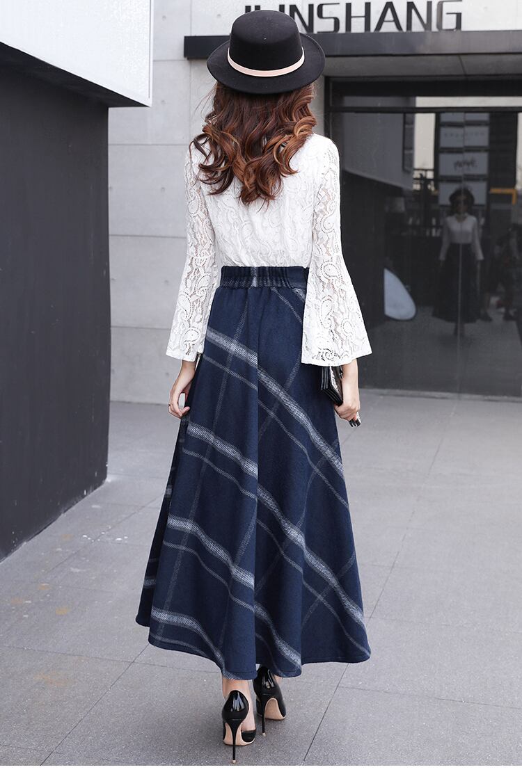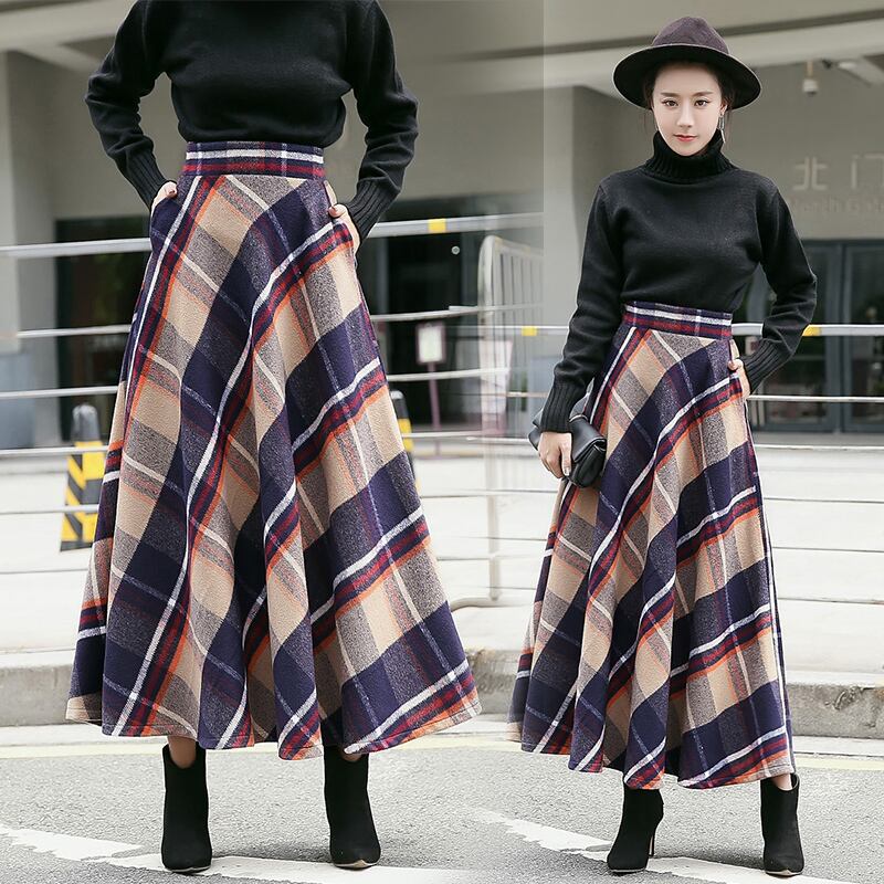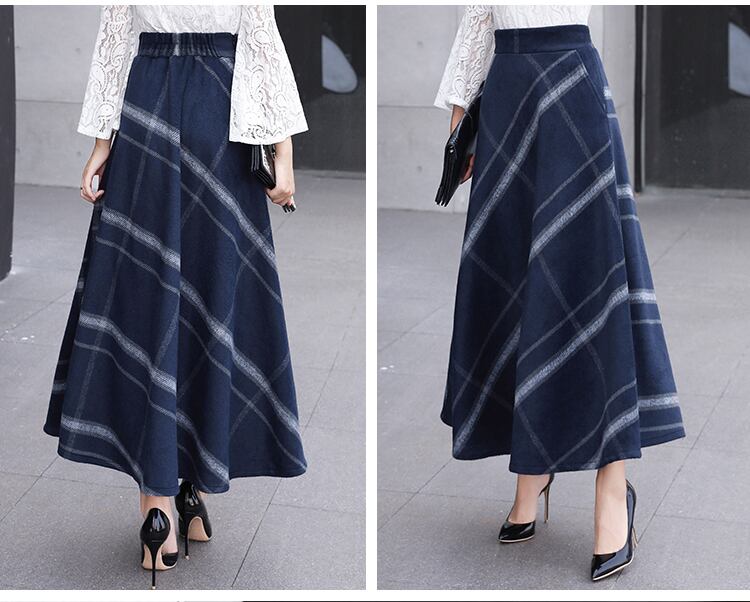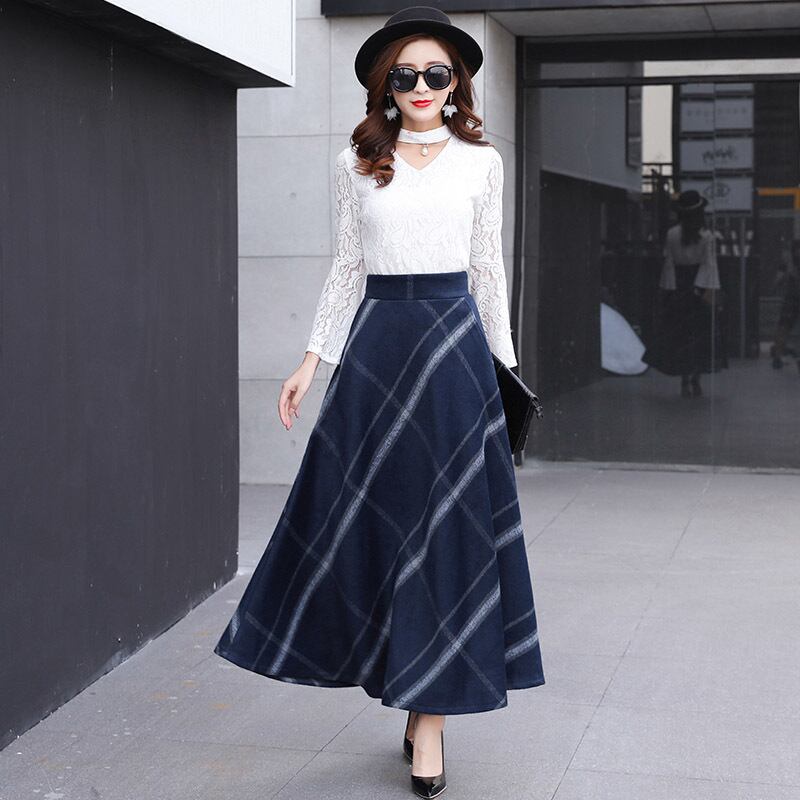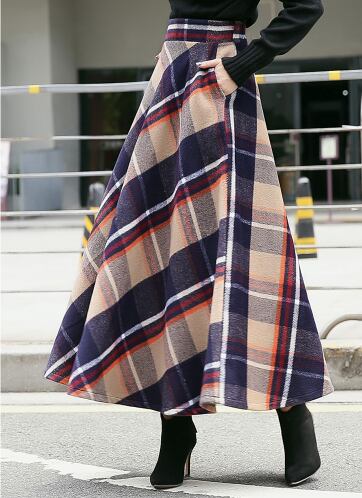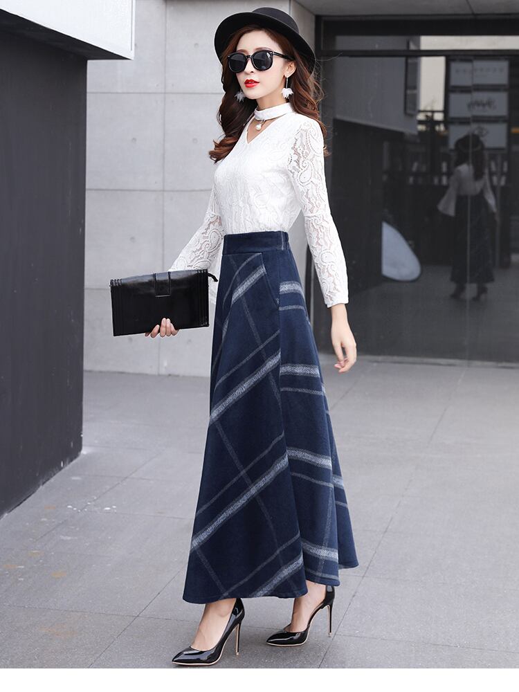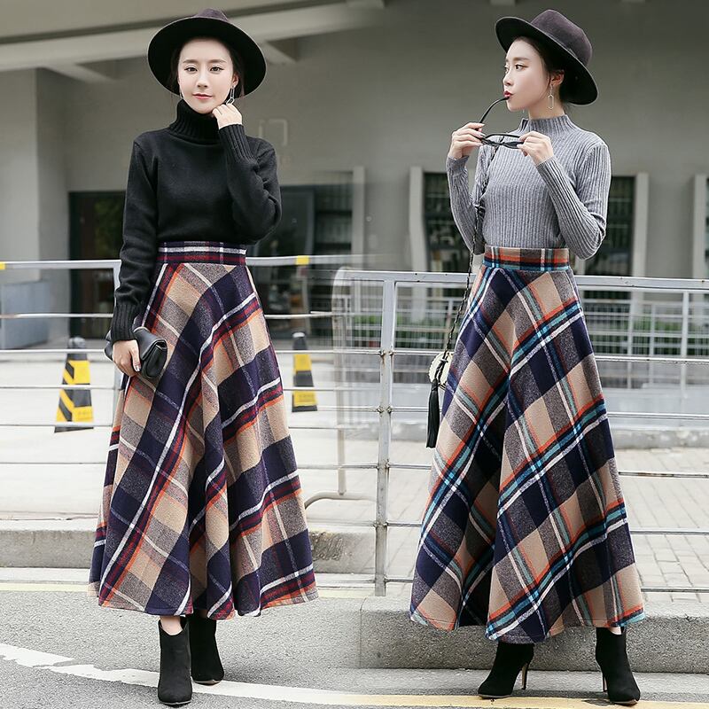 レディース 秋冬新作 オルチャン 韓国 スカート ロング マキシ チェック ボトムス エレガント サーキュラー ハイウエスト ギンガムチェック 【N103】