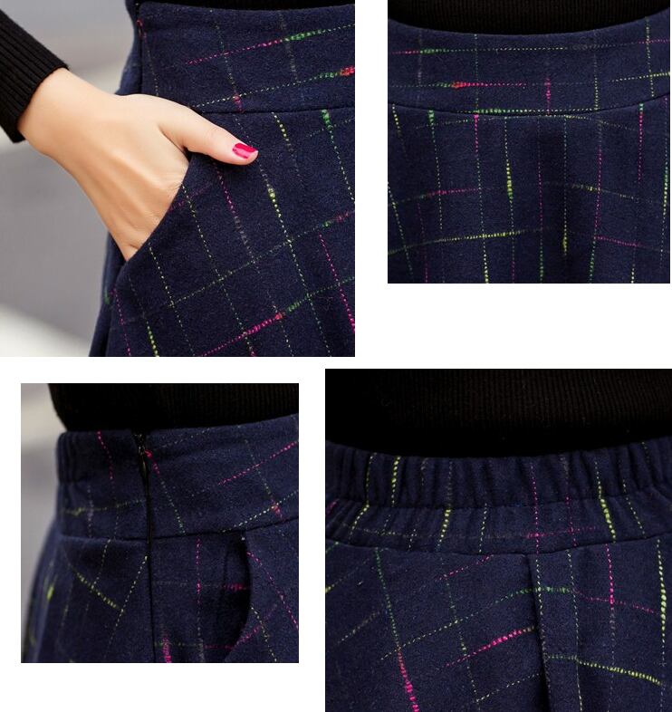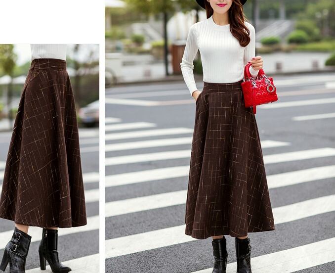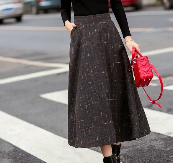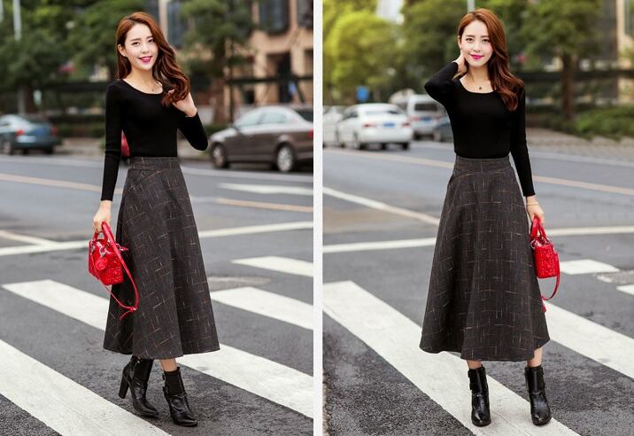 チェック 刺繍 ミモレ丈 スカート フレア ロング ボトムス レディース 秋冬新作 オルチャン 韓国 【N105】