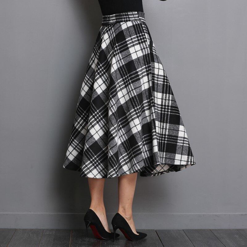 レディース 秋冬新作 オルチャン 韓国 チェック フレアスカート ボトムス ミモレ丈 ロング Aライン 【N107】