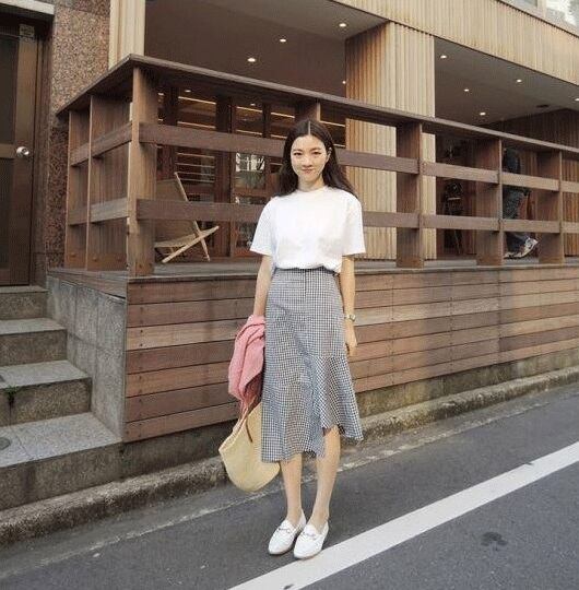 レディース 秋冬新作 オルチャン 韓国 チェック ボトムス スカート フィッシュテール ギンガムチェック ミモレ丈 フレアスカート 【N110】