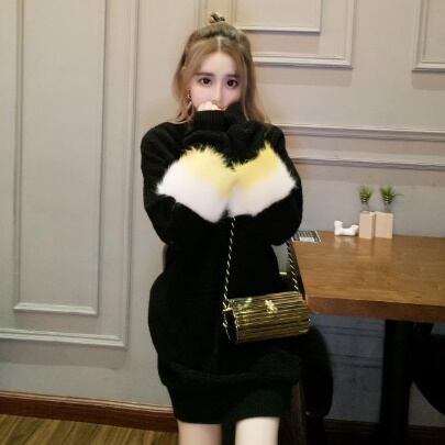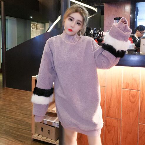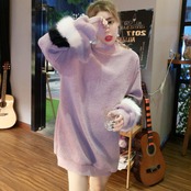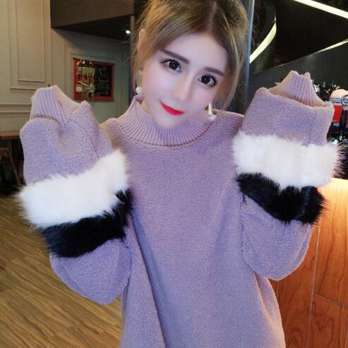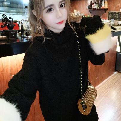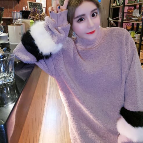 ニットワンピース セーター ハイネック 黒 ブラック ピンク ロング ゆるニット オルチャン 韓国 着痩せ 大きいサイズ 秋冬新作 ファッション オーバーサイズ 体系カバー フェイクファー付き袖 レディース 長袖 カジュアル ガーリー 大人かわいい ママコーデ お出かけ【J11】