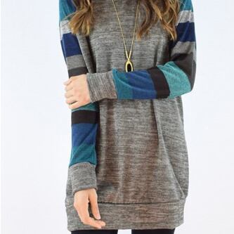 ワンピース セーターシャツ ボートネック 黒+ブルーストライプ グレー+ブルーストライプ ブラック ロング ゆるニット オルチャン 韓国 着痩せ 大きいサイズ 秋冬新作 ファッション オーバーサイズ 体系カバー ロングシャツ レディース 長袖 カジュアル 大人かわいい ママコーデ お出かけ【J12】