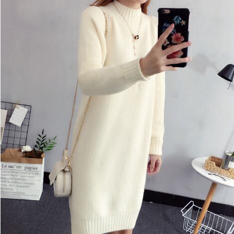 ニットワンピース セーター ハイネック ホワイト グレー ライトラクダ ブラウン 白 茶 ロング ゆるニット オルチャン 韓国 着痩せ 大きいサイズ 秋冬新作 ファッション オーバーサイズ 体系カバーボトミングスカート ミモレ丈 レディース 長袖 カジュアル ガーリー 大人かわいい ママコーデ お出かけ【J17】