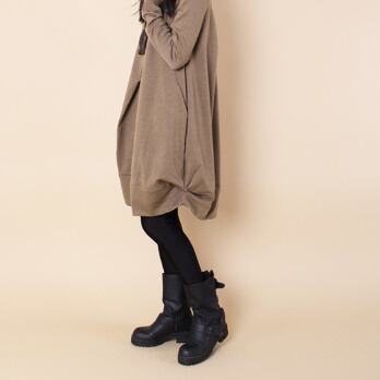 ニットワンピース セーター タートルネック Vネック グレー ライトブラウン ロング ゆるニット オルチャン 韓国 着痩せ 大きいサイズ 秋冬新作 ファッション オーバーサイズ 体系カバー ポイントタッグ入り レディース 長袖 カジュアル ガーリー 大人かわいい ママコーデ お出かけ【J20】