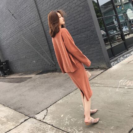 ニットワンピース セーター タートルネック Vネック 黒 白 ホワイト ダークオレンジ ブラック ロング ゆるニット オルチャン 韓国 着痩せ 大きいサイズ 秋冬新作 ファッション オーバーサイズ 体系カバー (フード付き ボーダー ミモレ丈スカート リブニット) レディース 長袖 (カジュアル ガーリー 大人かわいい エレガント 上品など)(通勤コーデ ママコーデ お出かけ)【J35】