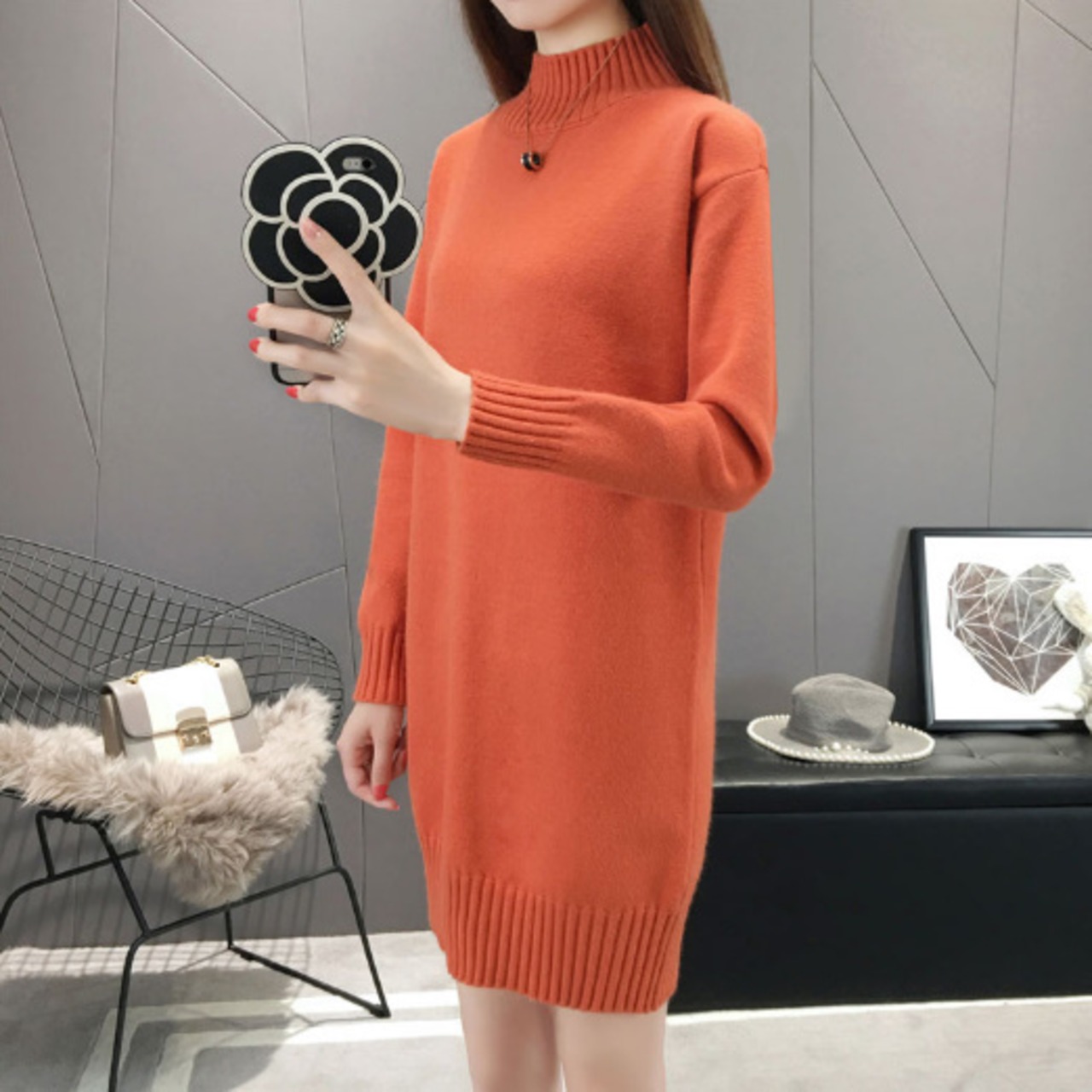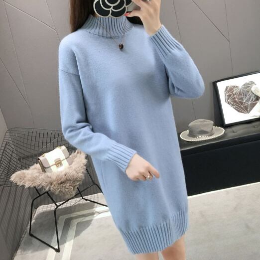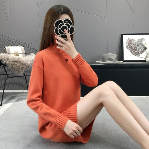 ニットワンピース セーター ハイネック オレンジ ブルー 青 ロング ゆるニット オルチャン 韓国 着痩せ 大きいサイズ 秋冬新作 ファッション オーバーサイズ 体系カバーミニ丈スカート レディース 長袖 カジュアル ガーリー 大人かわいい ママコーデ お出かけ【J38】