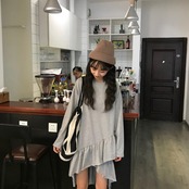 アシンメトリドレスのようなかわいさを演出するセーターシャツワンピースです♪