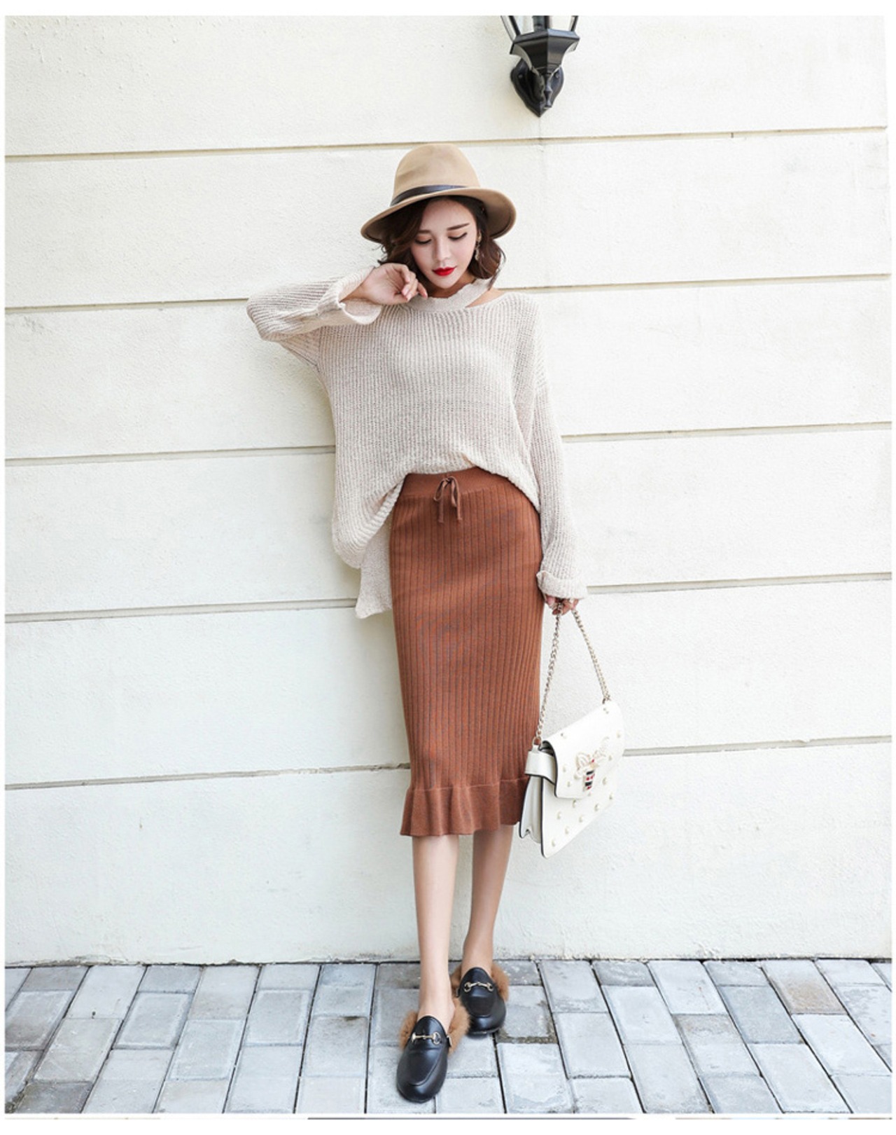裾フリルで大人フェミニンなニットスカート。