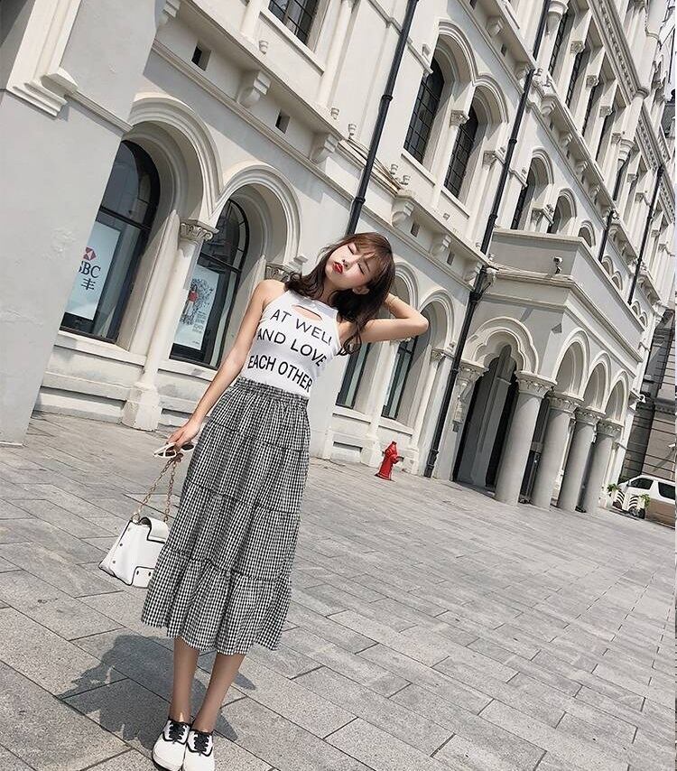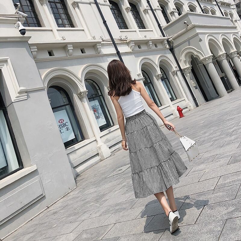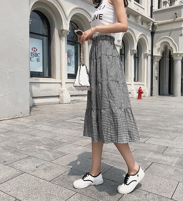 レディース 秋冬新作 オルチャン 韓国 ガーリー ギンガムチェック フレア スカート ボトムス ミモレ丈 カジュアル【N123】