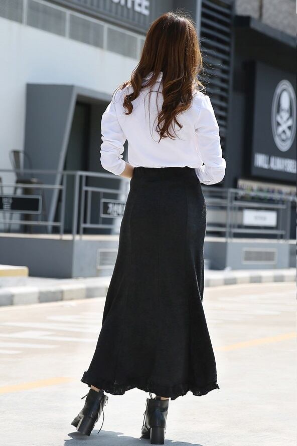 歩くたびにヒラヒラ揺れるフリルがとっても可愛いロング丈のニットスカート♪