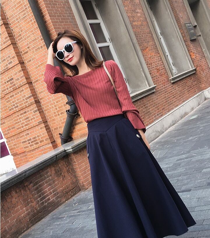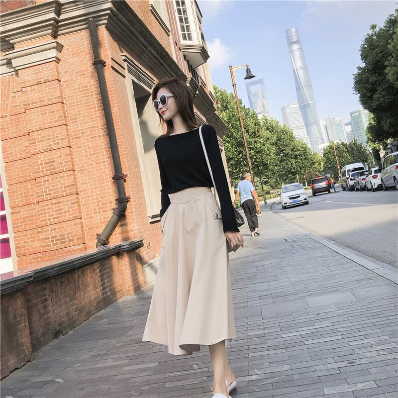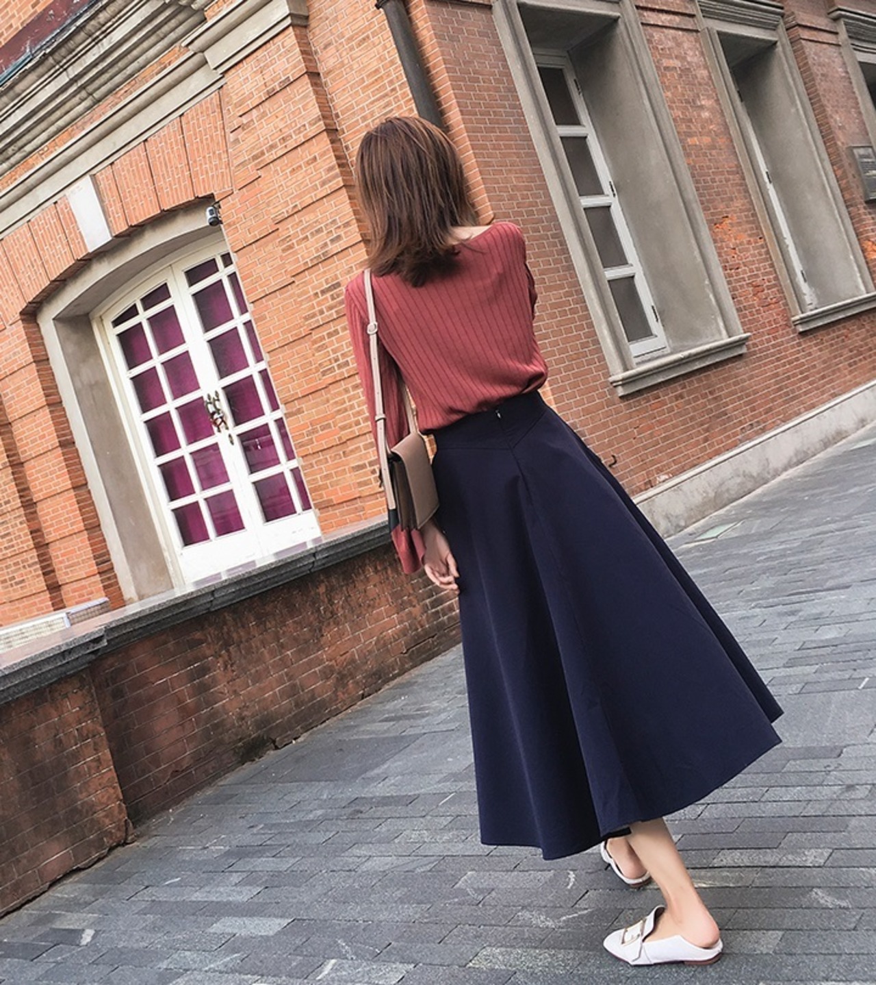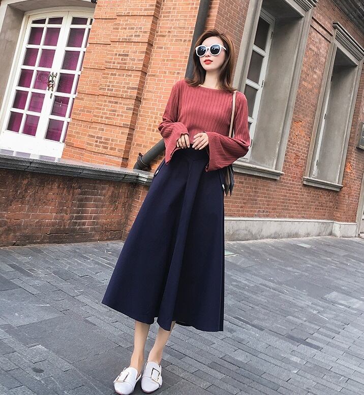 レディース 秋冬新作 オルチャン 韓国 ボトムス スカート フレア ドレープ ミモレ丈 ロング エレガント フェミニン 【N132】
