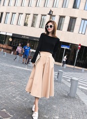 フレアシルエットで体型カバーができるのも嬉しい☆