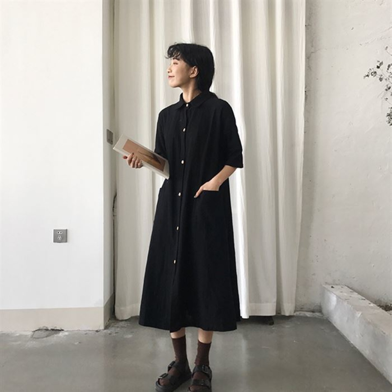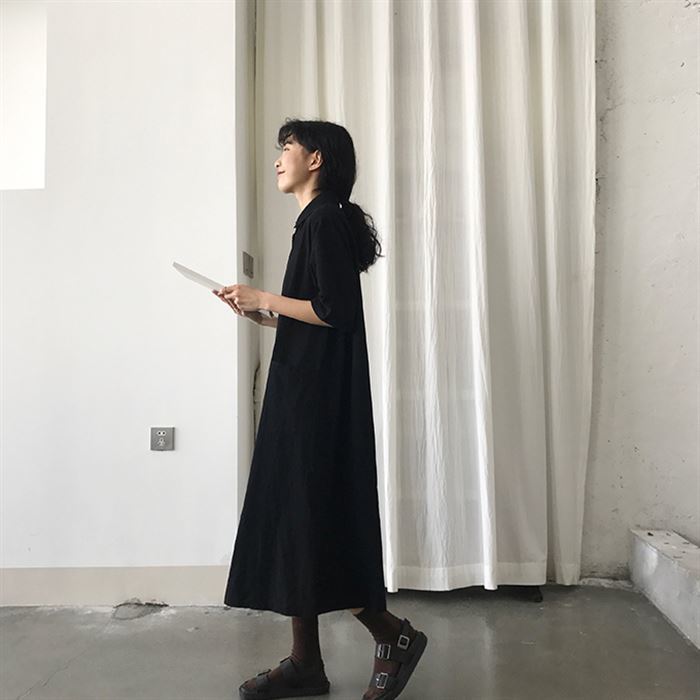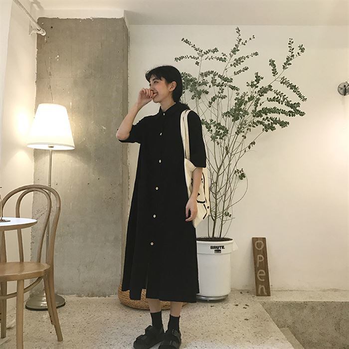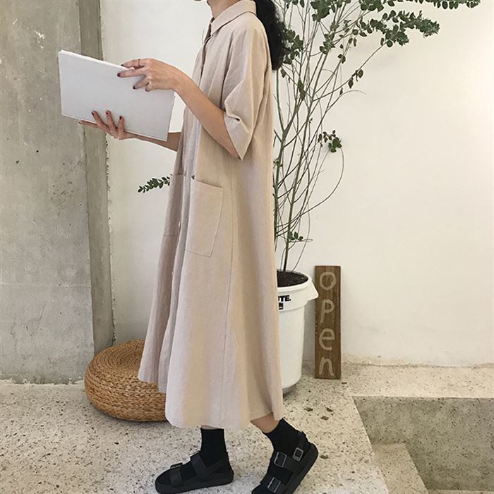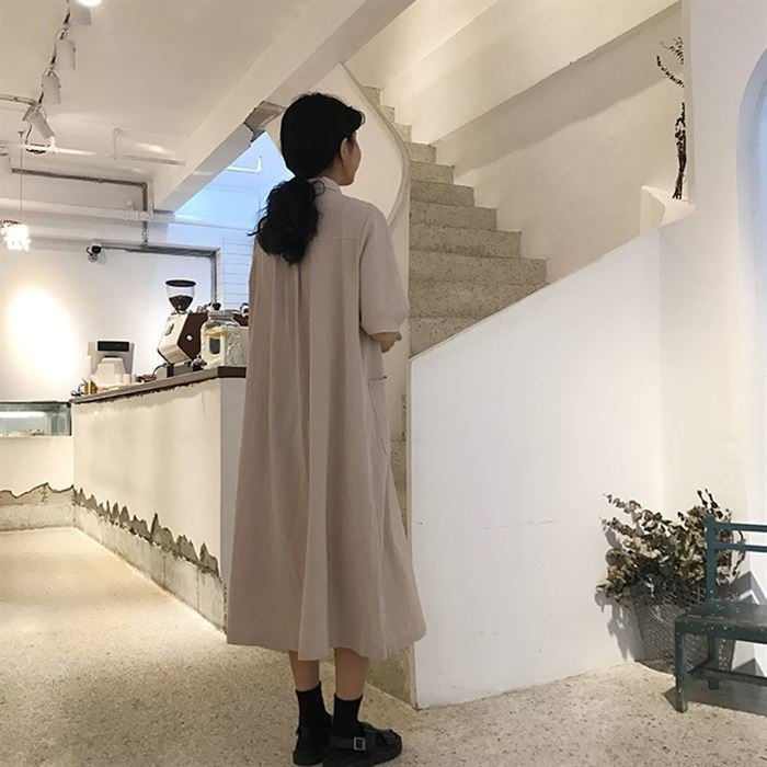 コットン素材が肌に優しい♪シンプルデザインのシャツワンピース。