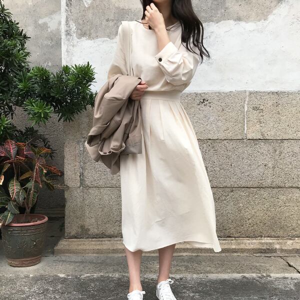 シンプルでナチュラルガーリーなロングワンピース♪
