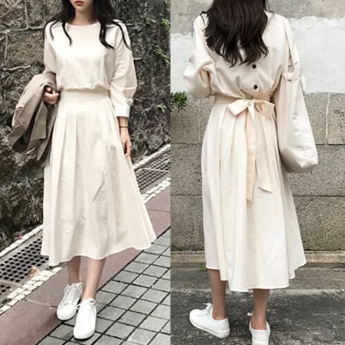 ワンピース 大きいサイズ ワンピースバックコンシャスナチュラルワンピース ハイウエストワンピース 半袖 ミモレ丈ワンピース 韓国デザイン 韓国ファッション オルチャン ナチュラルワンピース 春服 新作 春新作 ワンピース