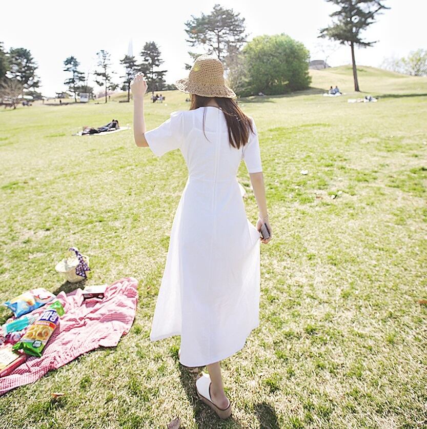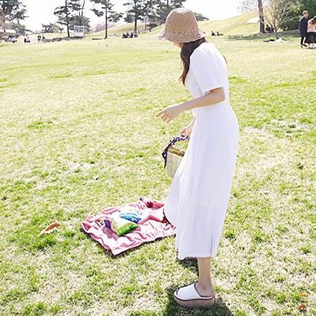ワンピース大きいサイズ ウエストマークワンピース Aラインワンピース ウエストマークワンピース 韓国デザイン 韓国ファッション オルチャン 半袖 ミモレ丈 春服 春 春新作 新作 ワンピース