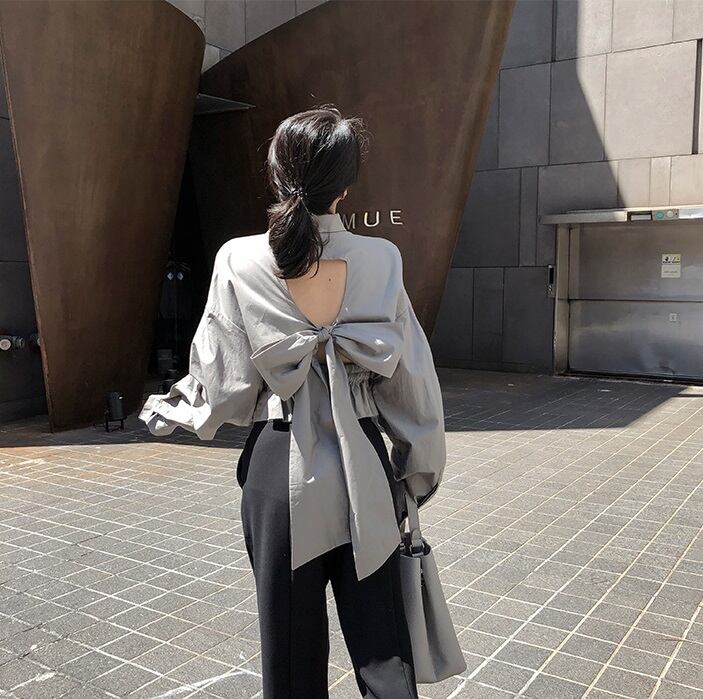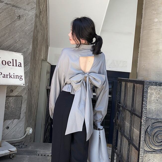 シャツブラウス レディース バッグリボンシャツ 白 リボンシャツ ブラウウス ゆったり シャツ大きいサイズ 韓国デザイン 韓国ファッション 白シャツ トレンド 長袖 春服 新作 春新作