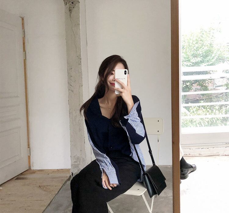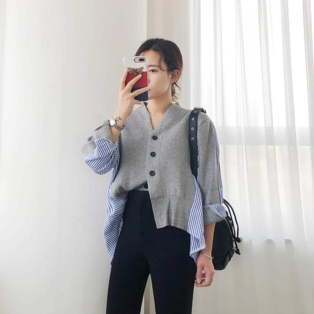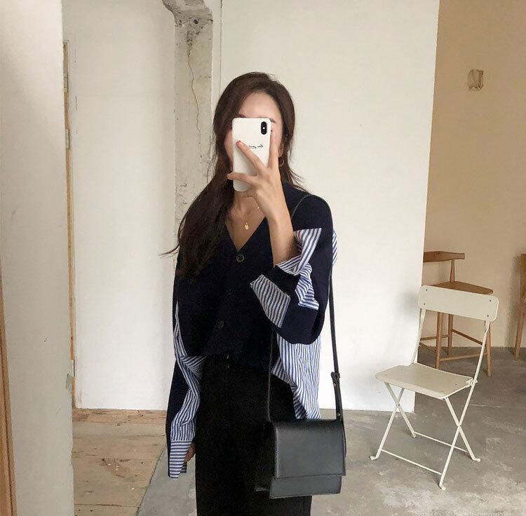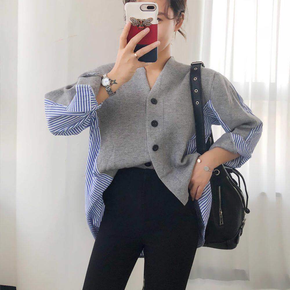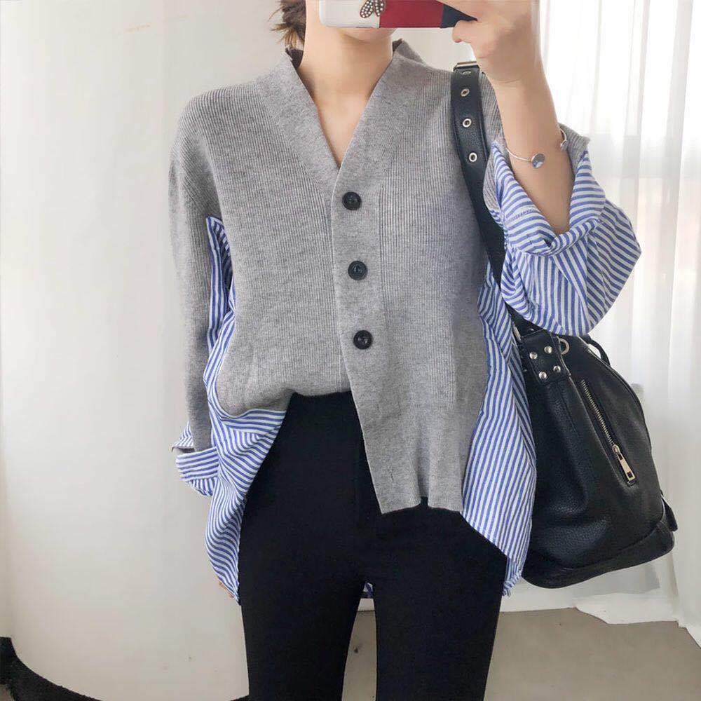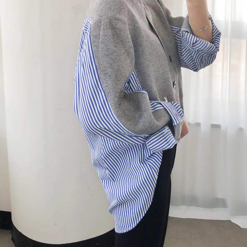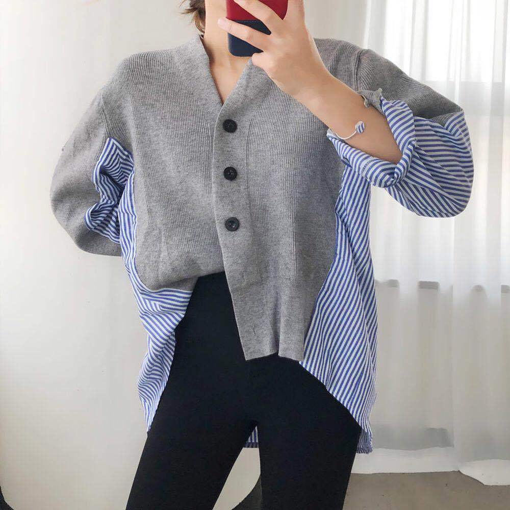 カーディガン レディース 異素材MIX シャツカーディガン フロントボタン 韓国デザイン 韓国ファッション オルチャン 春カーディガン 新作カーディガン 春服 春新作 新作