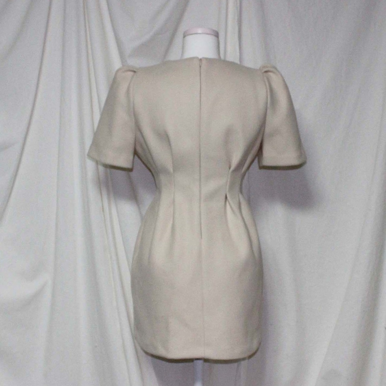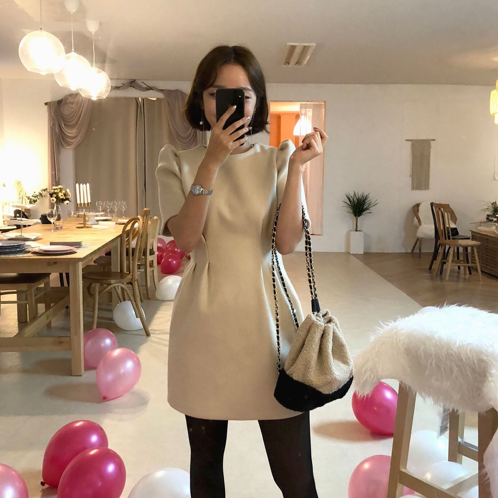 シンプルながらも女性らしさを引き出す、フェミニンなパフスリーブワンピース