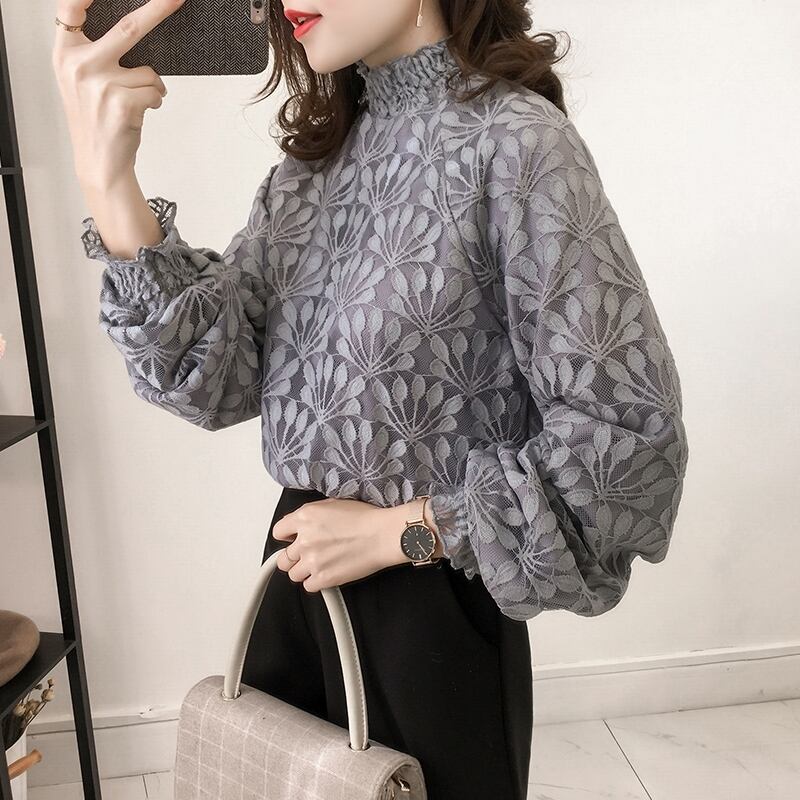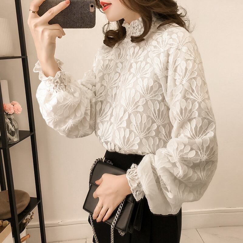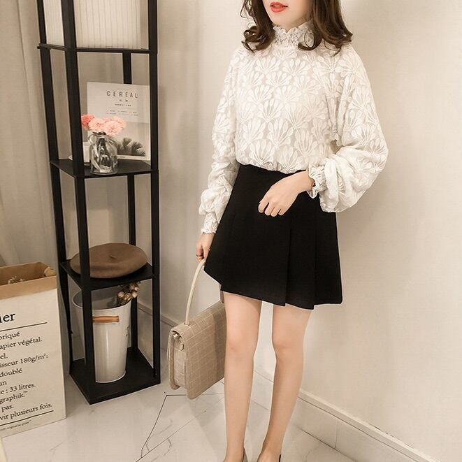 ブラウス 大きいサイズ ハイネックボリューム袖 シェル柄 トレンドブラウス 新作ブラウス 春ブラウス トレンド 韓国デザイン 韓国ファッション 春服 春新作 新作 ブラウス 大きいサイズ ハイネックボリューム袖 シェル柄 トレンドブラウス
