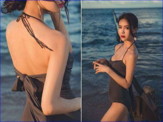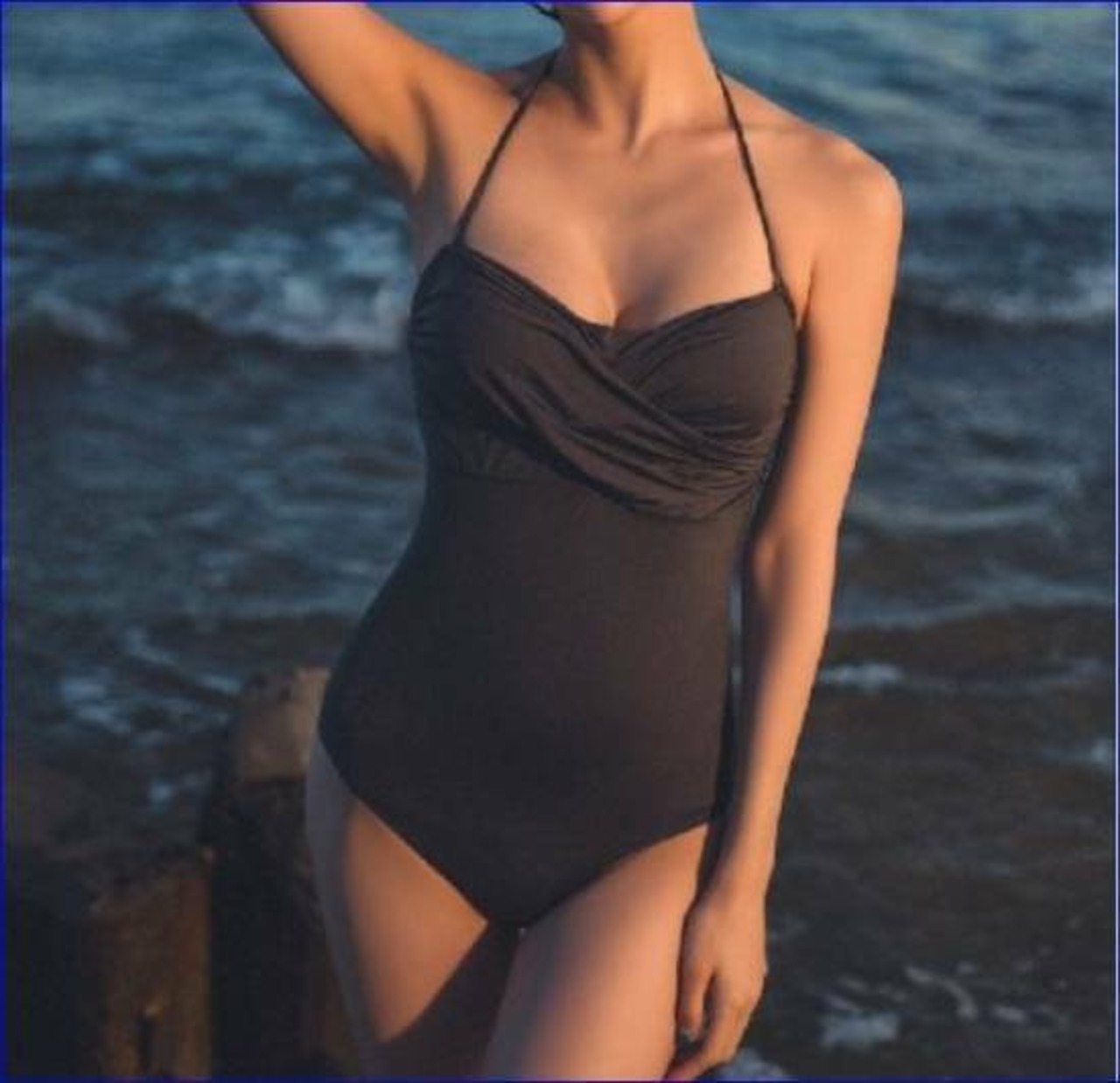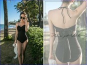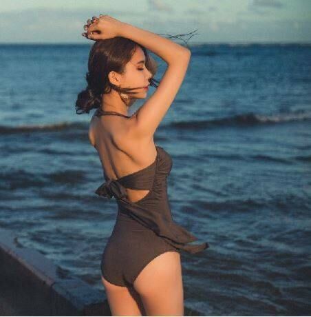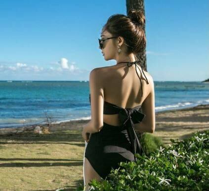 バックスタイルからはビキニにも見えるちょっぴりセクシーな水着です。