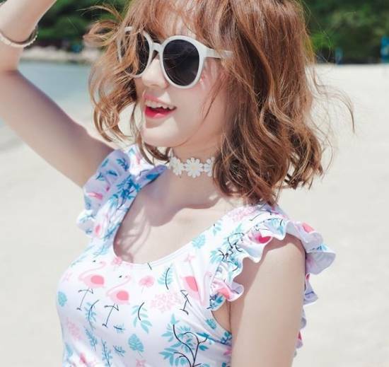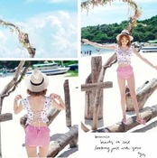 涼し気なカラーにトップのプリントが女性らしさをアピールしてくれます。