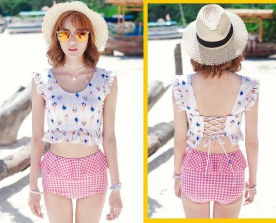 水着 レディース ビキニ水着 大きいサイズ かわいい タンキニ 夏 新作 レースアップ セクシー チェック プリント フリル