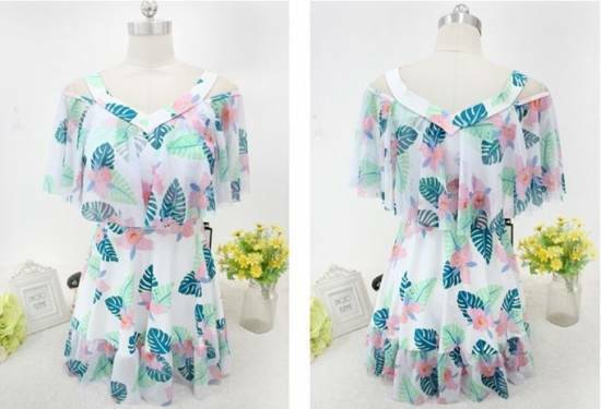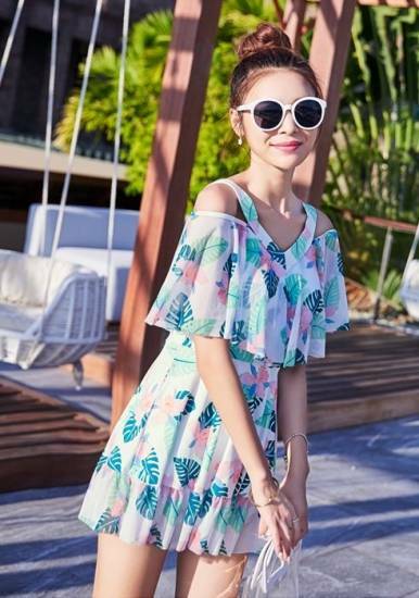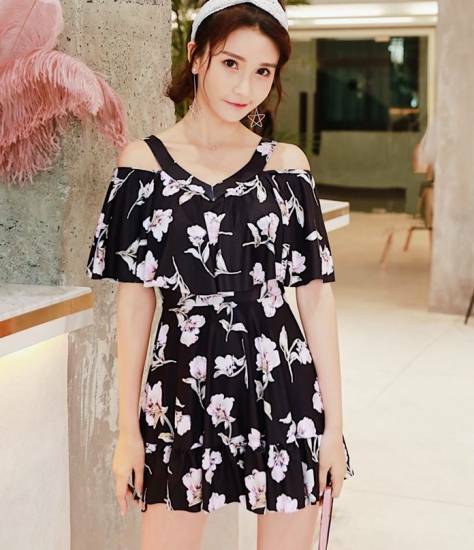 水着 ワンピース 体型カバー ワンピース水着 オールインワン 水着 ワンピース 40代 大きいサイズ 2XL 3XL 4XL 5XL 水着 レディース ママ 可愛い 夏 新作 花柄 オフショル 水着